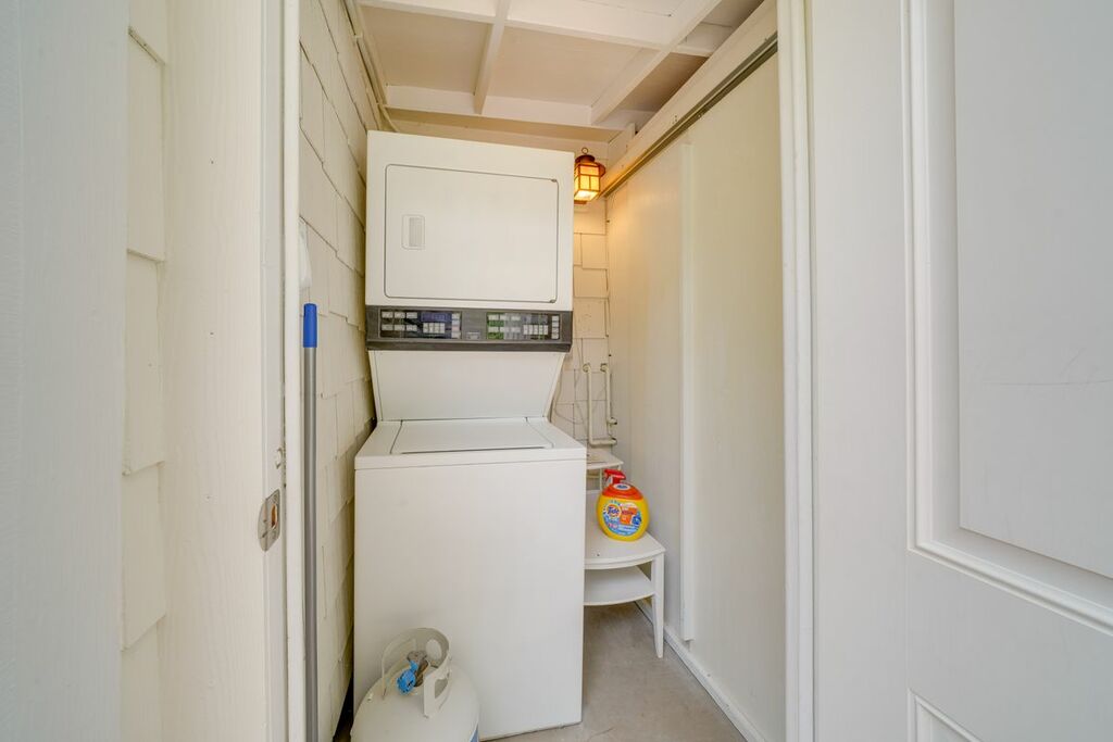 Inside, the cottage offers a clean, inviting atmosphere with natural light that fills the space, creating a calming, coastal feel. A cozy fireplace adds warmth to the living area, perfect for cooler evenings. The living space opens directly to a deck where you can relax, enjoy the sunset, or take in the morning light over the ocean.