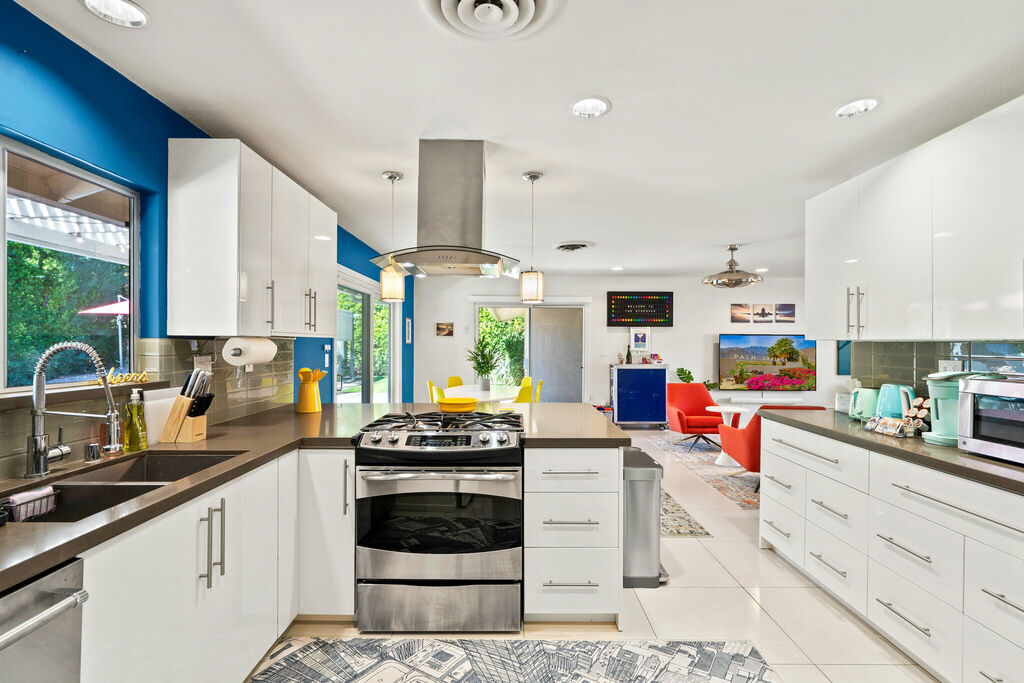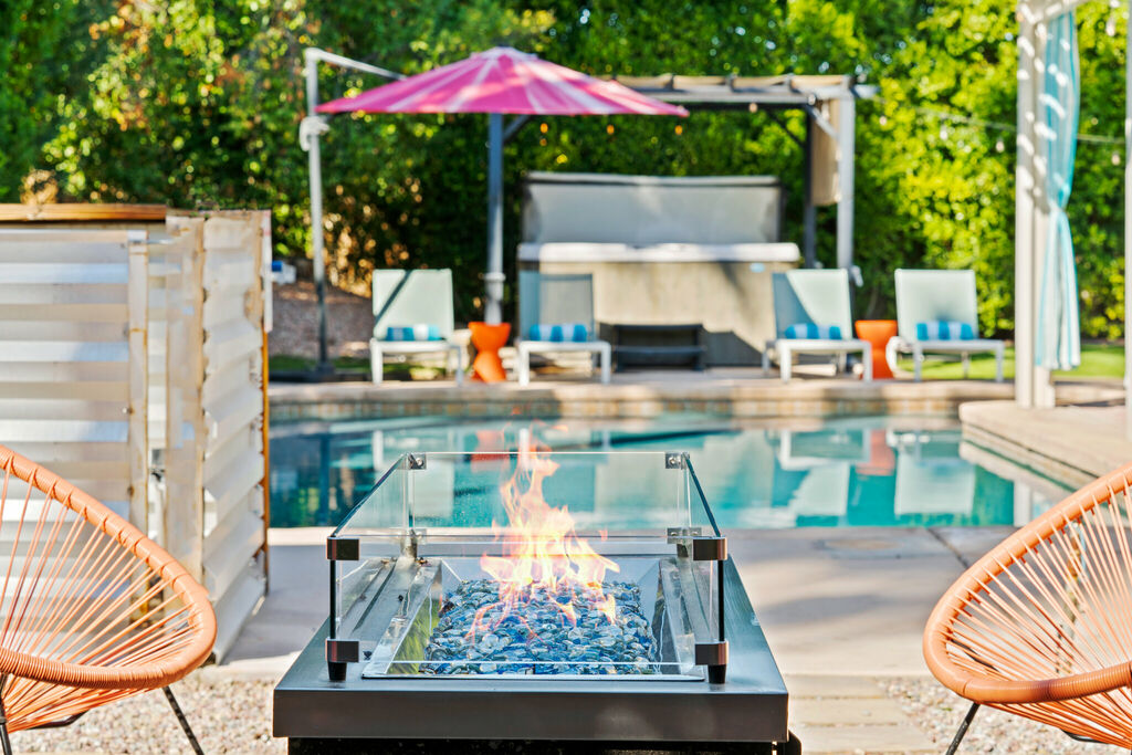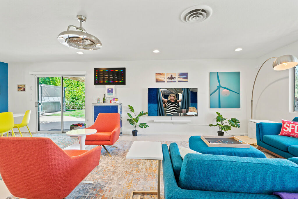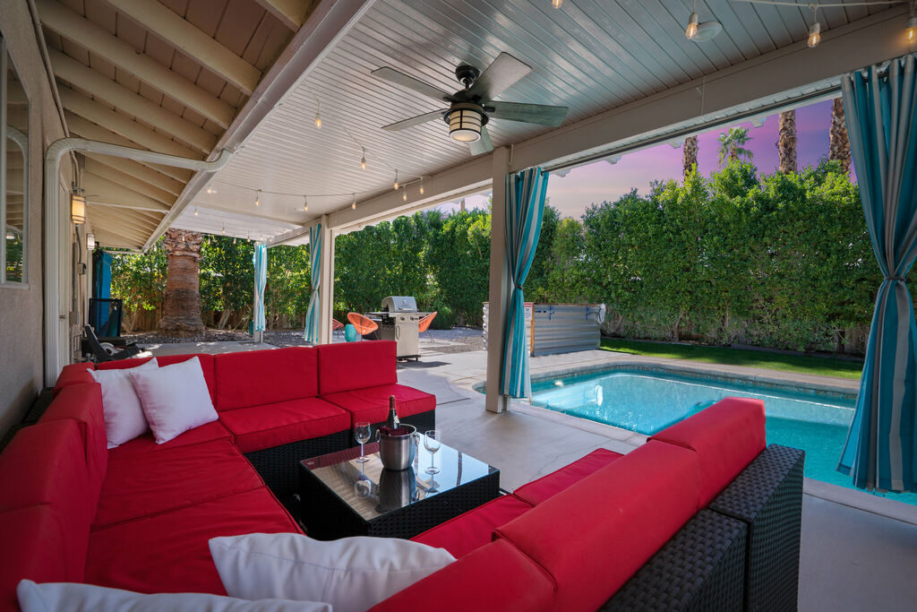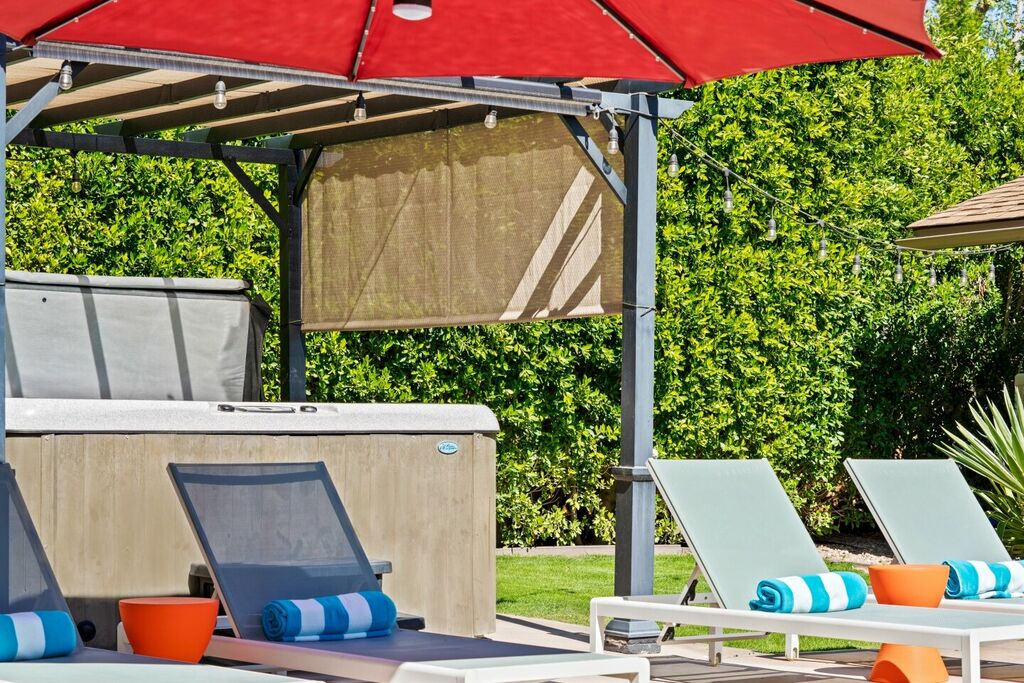 The property boasts a meticulously designed interior that captures the essence of mid-century aesthetics while offering modern conveniences. Step into the backyard, and discover a private sanctuary that defines relaxation. The outdoor haven features a pristine pool, hot tub, al fresco dining area, and multiple lounging zones where you can bask in the desert sun or enjoy a tranquil evening under the stars. A gas grill stands ready for those who wish to showcase their culinary skills.