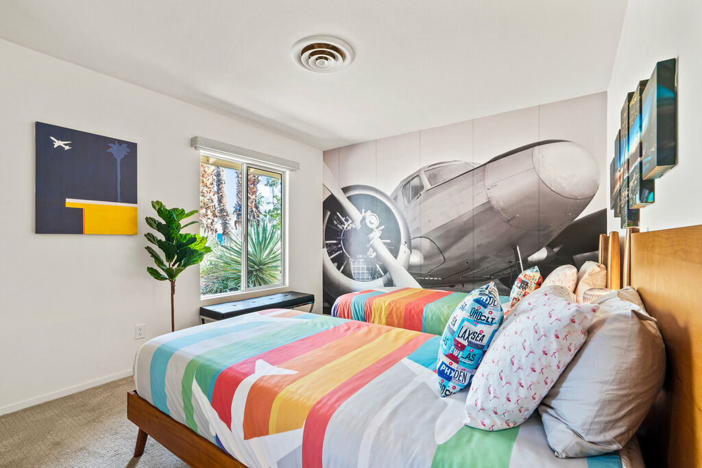 Indulge in the unparalleled charm of 'The Stopover', an exquisite Alexander Company Mid-Century Modern house that invites you to step into the golden age of aviation. Nestled near the Palm Springs airport, this 3-bedroom, 2-bathroom retreat allows you to enjoy a glass of champagne in the First Class lounge while you wait for your flight. Or better yet, enjoy several poolside!