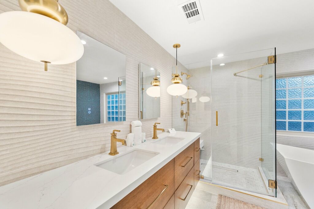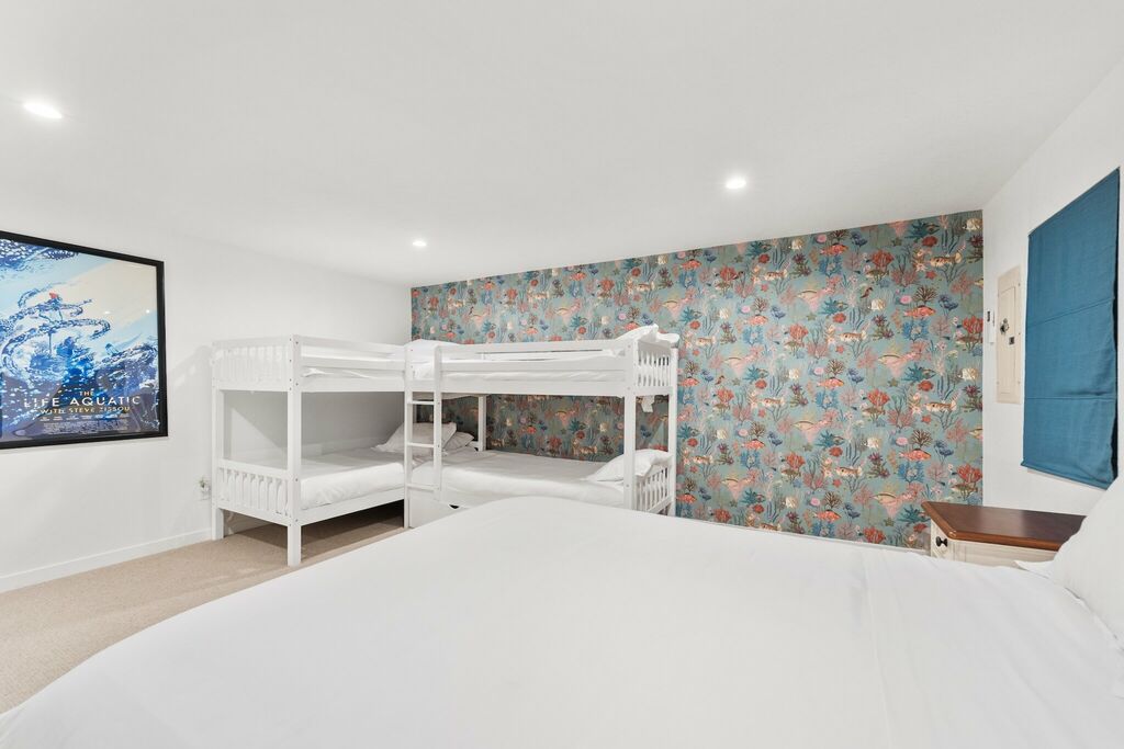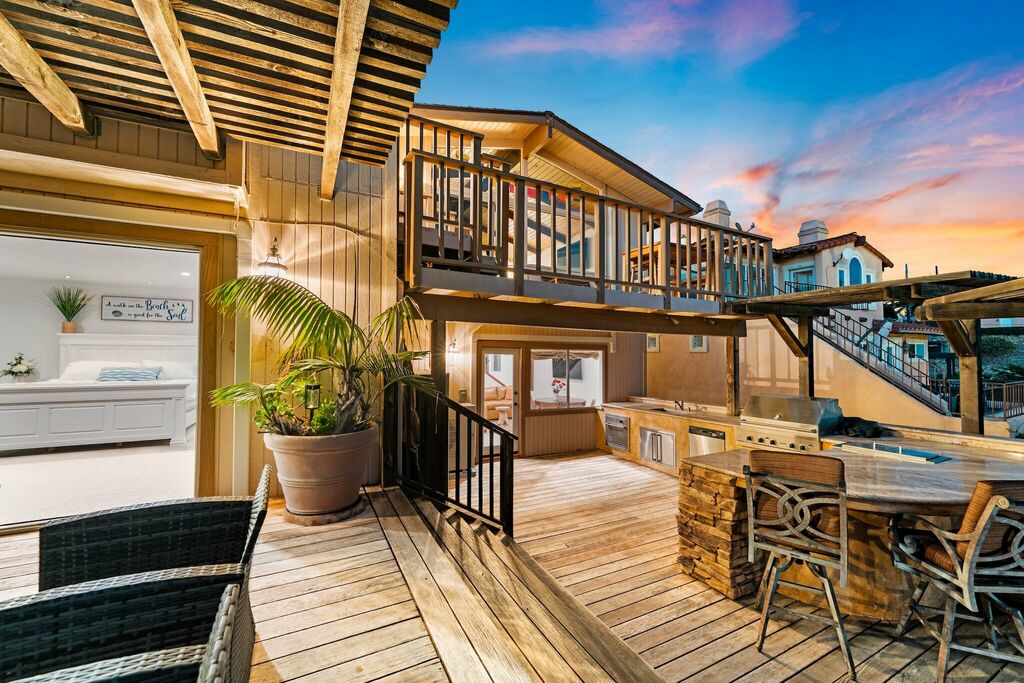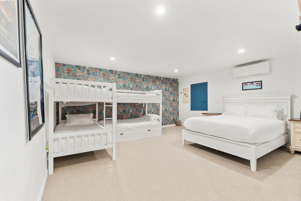 Each guest room has been designed for comfort and privacy. One includes an office nook, while another connects directly to the outdoor kitchen with built-in BBQ, Oven, island, and refrigerator — perfect for outdoor entertaining.