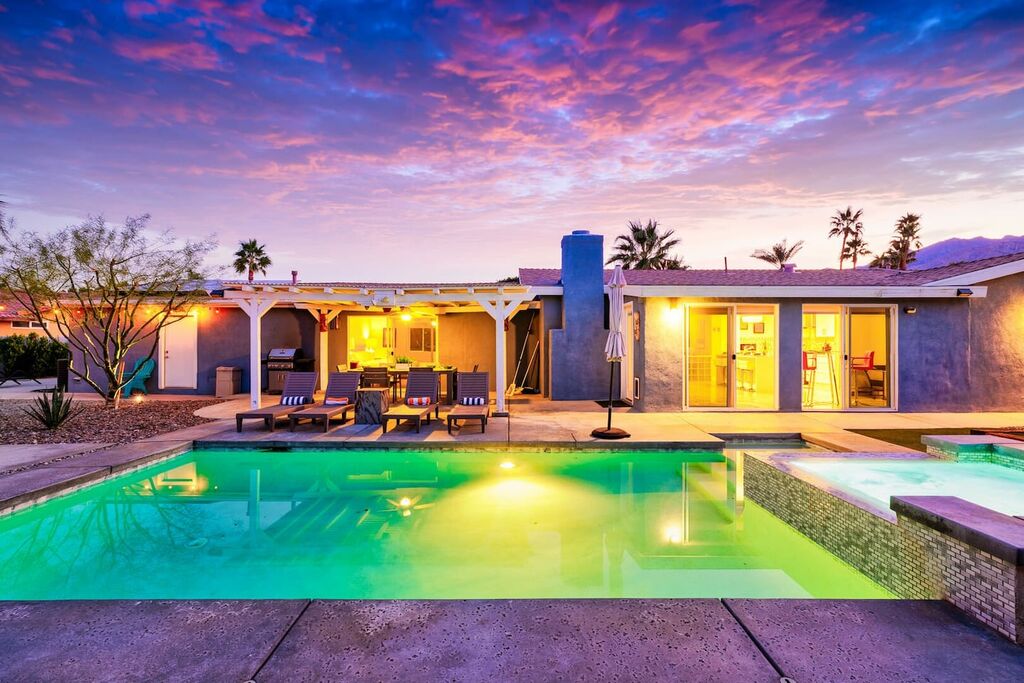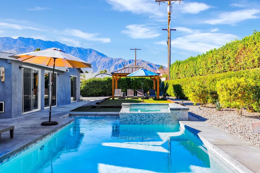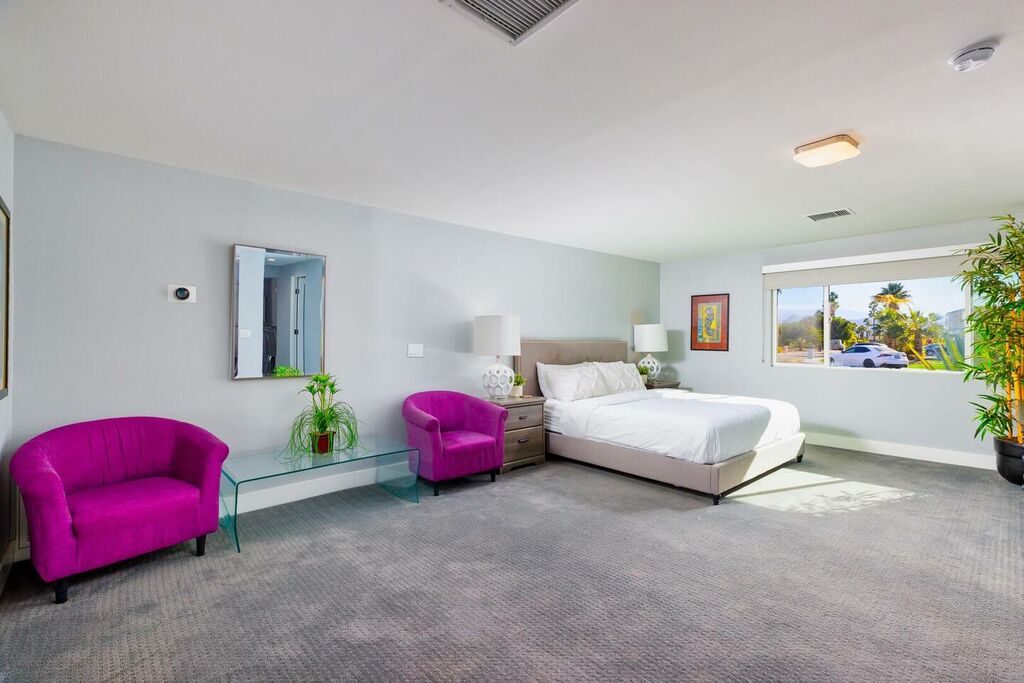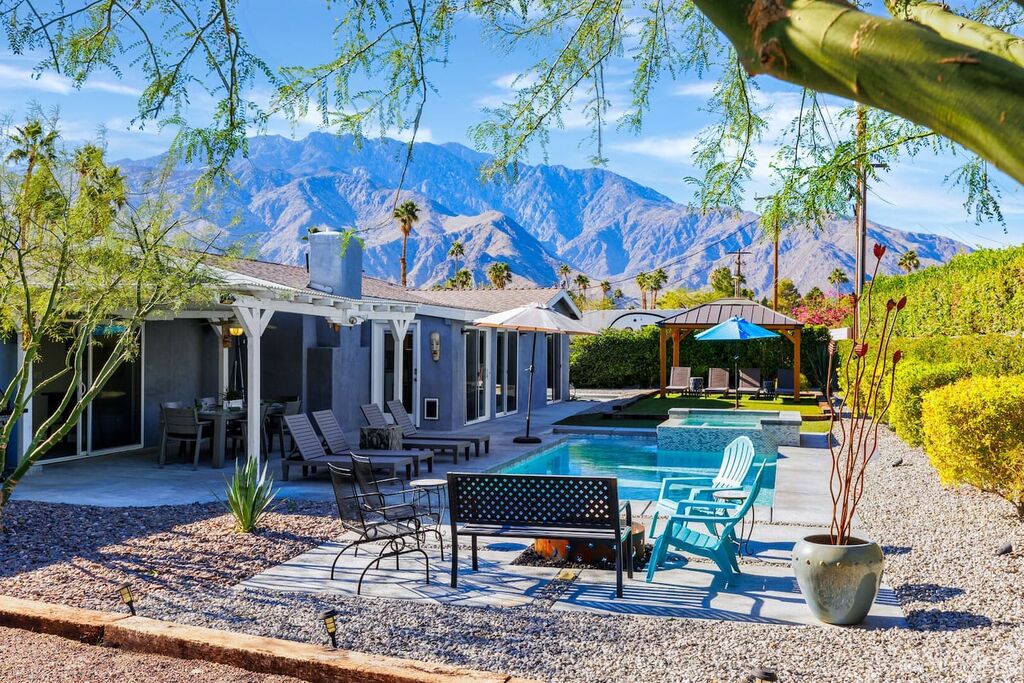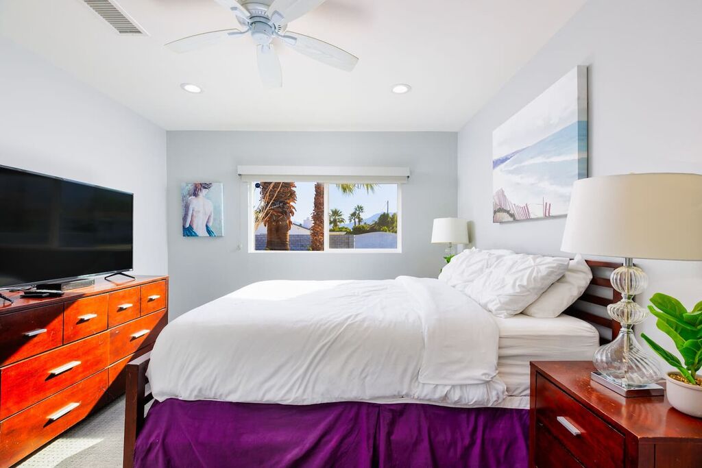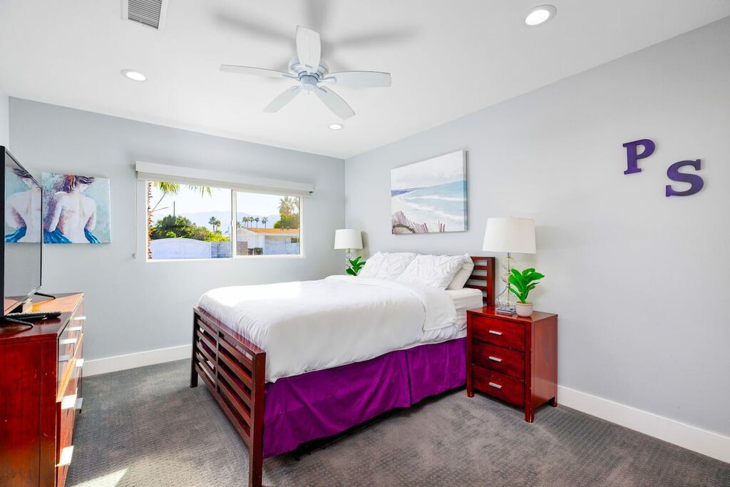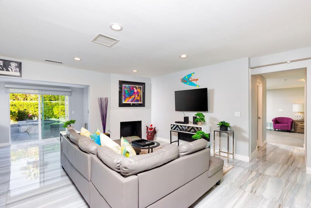 This Palm Springs gem has undergone an extensive makeover, featuring new flooring, cabinets, furnishings, and bedding. The result is a charming ambiance blending chic decor, captivating artwork, and modern fittings - a hip desert sanctuary.