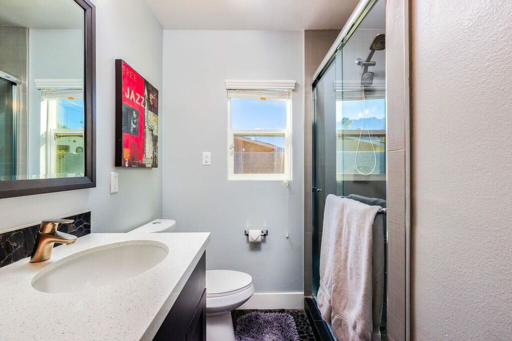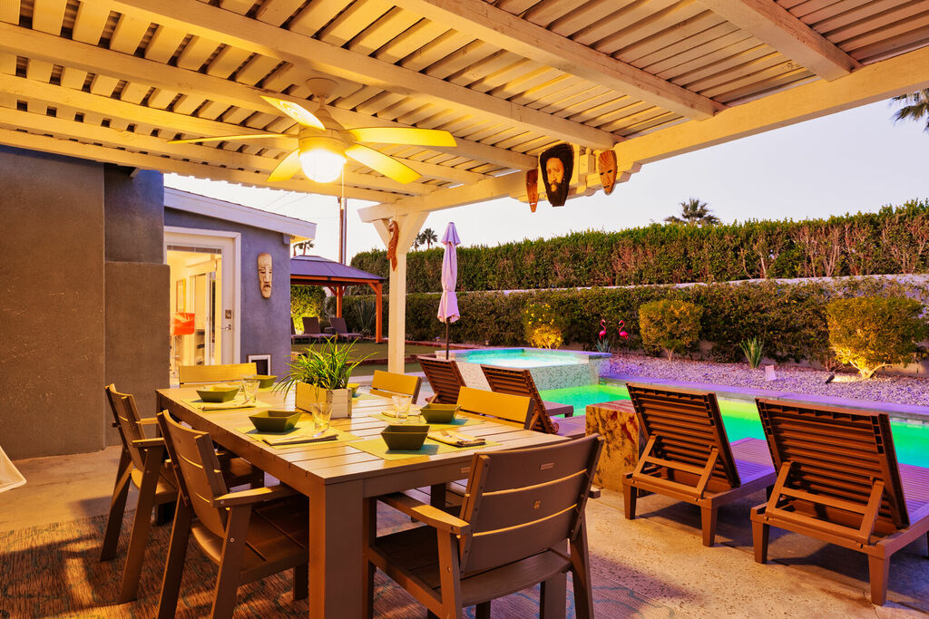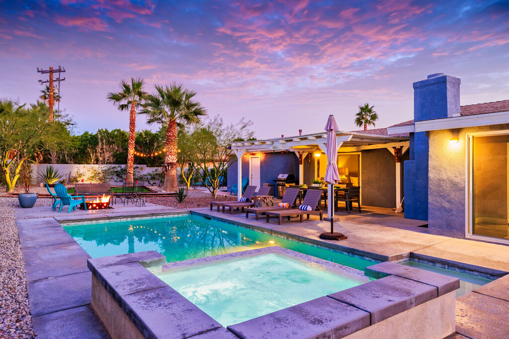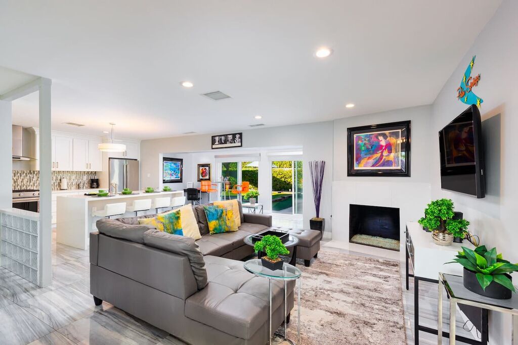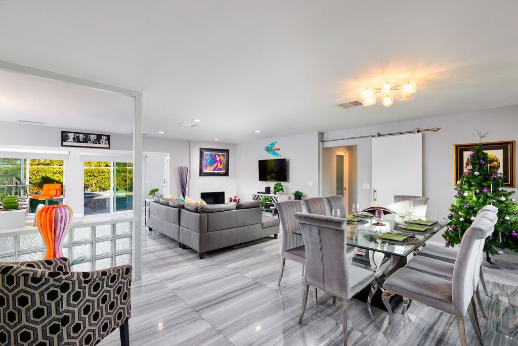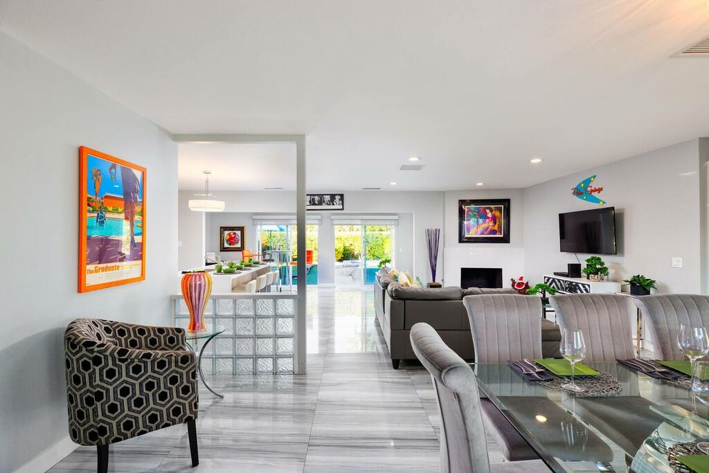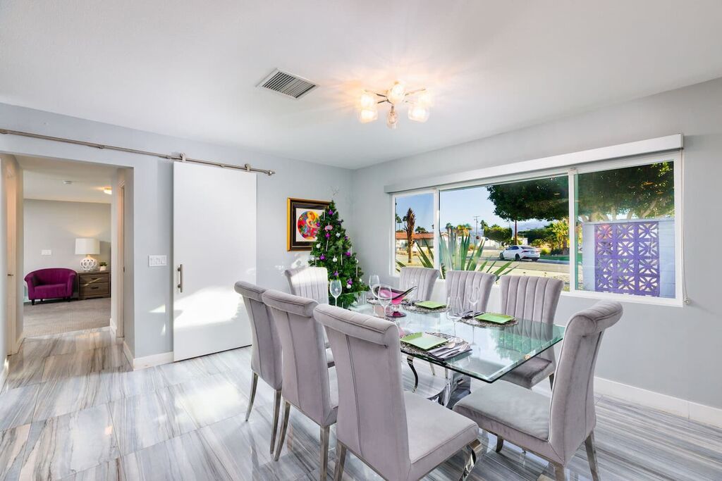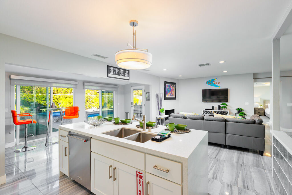 This Palm Springs gem has undergone an extensive makeover, featuring new flooring, cabinets, furnishings, and bedding. The result is a charming ambiance blending chic decor, captivating artwork, and modern fittings - a hip desert sanctuary.
