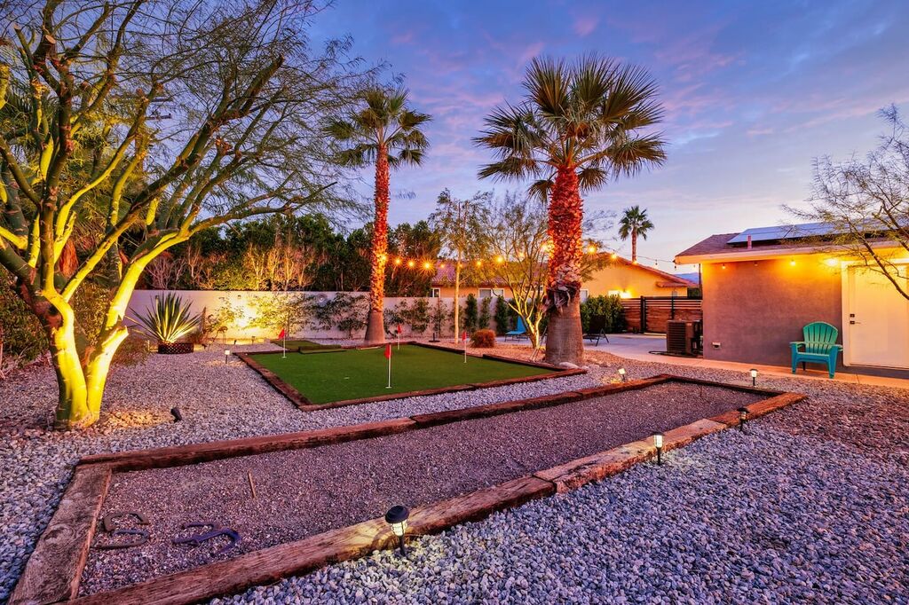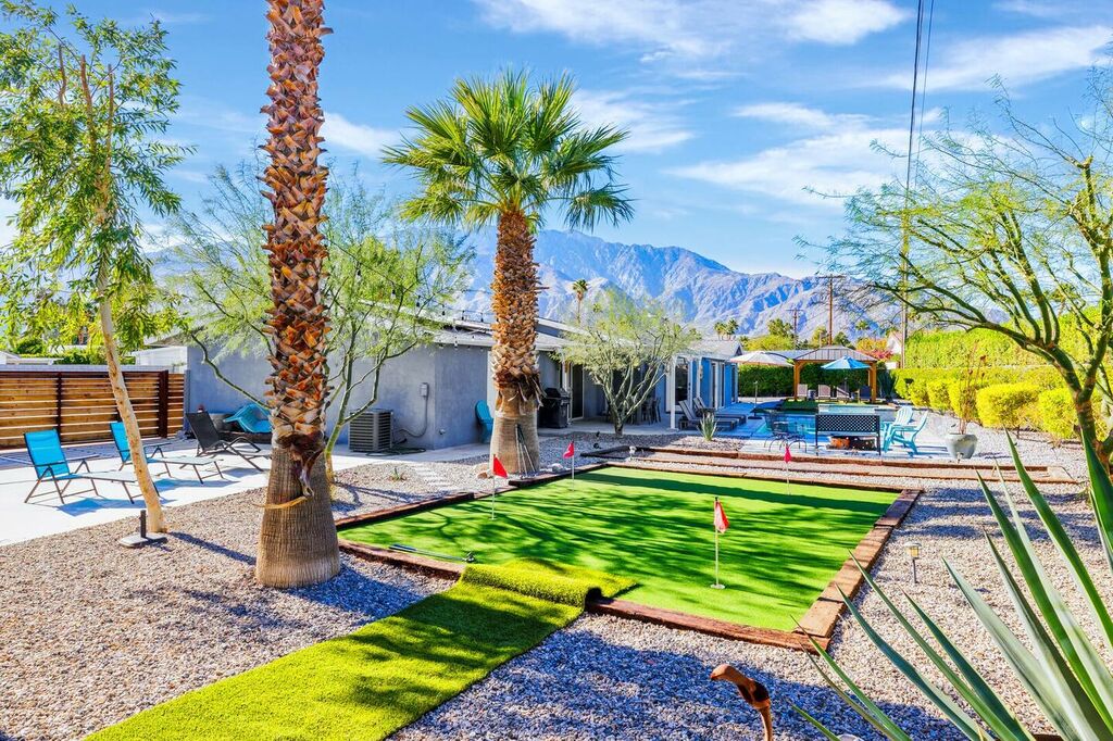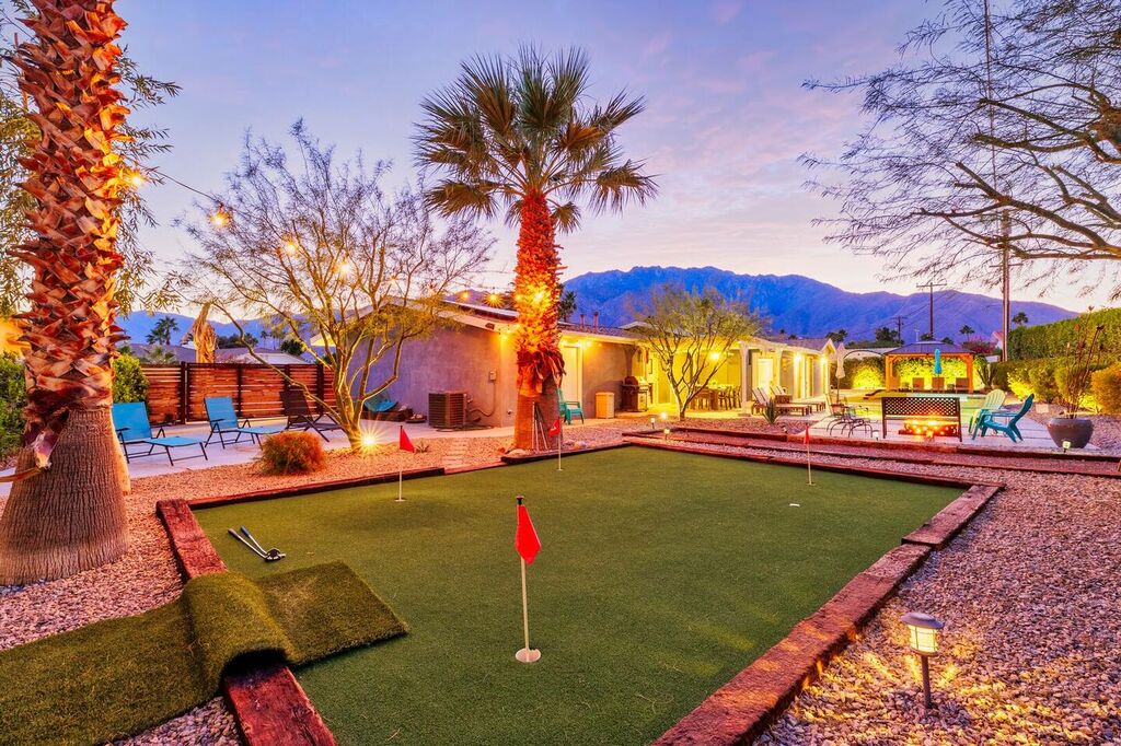 Sharpen your golf skills on the putting green amid palm trees, and on chilly evenings, unwind on sofas near the built-in firepit.