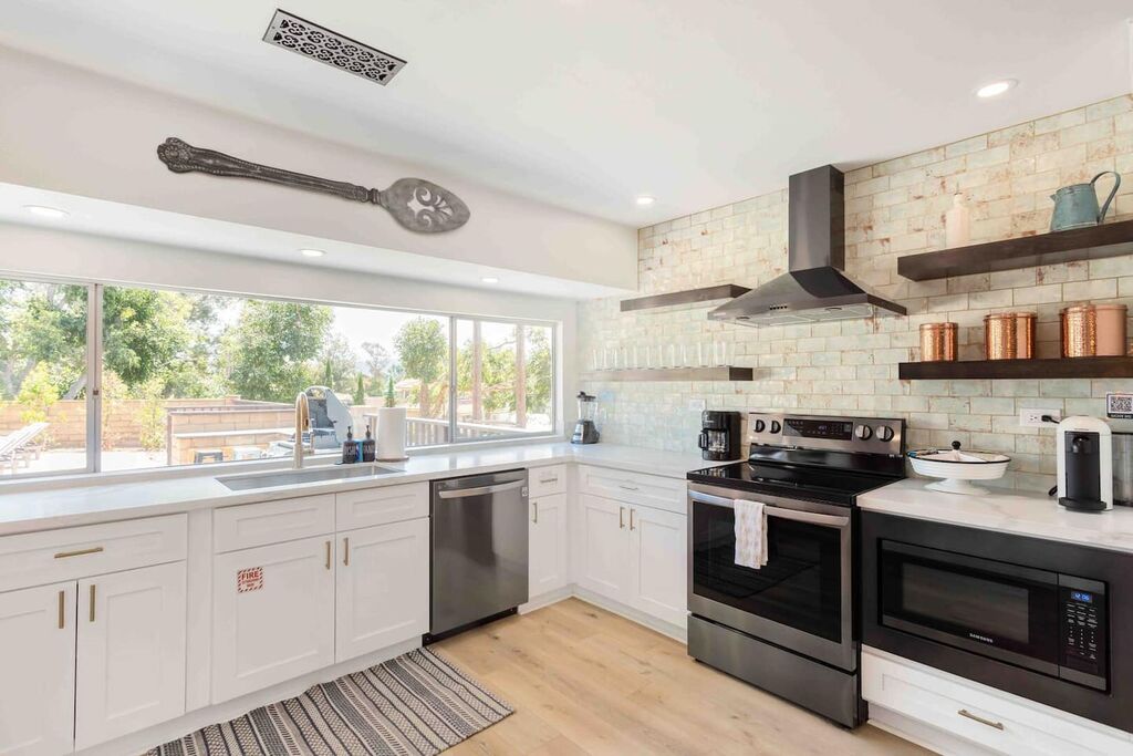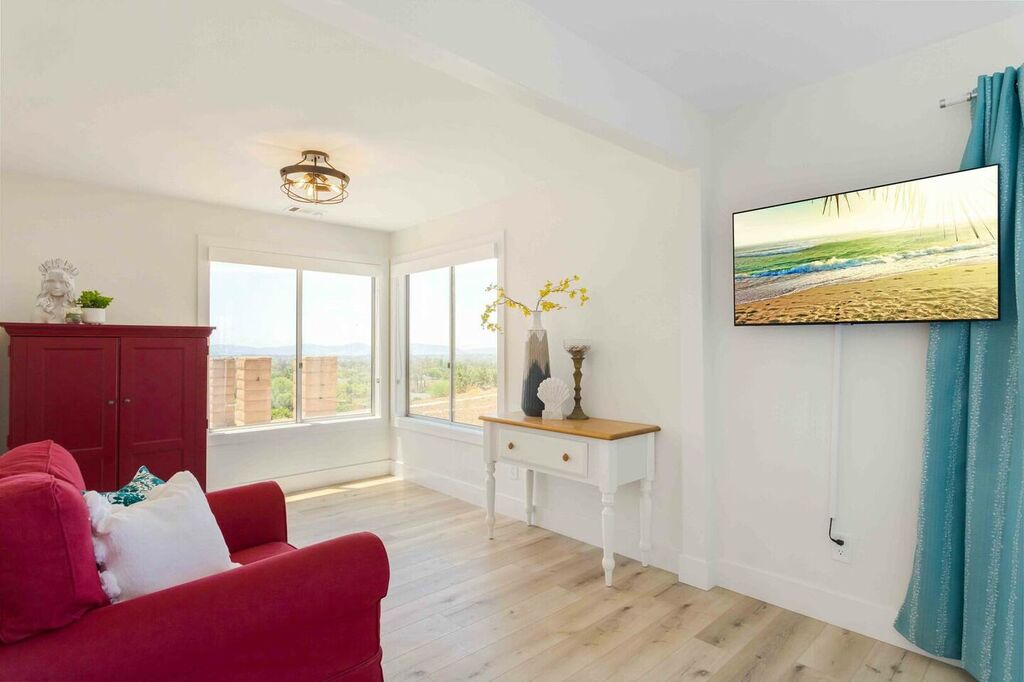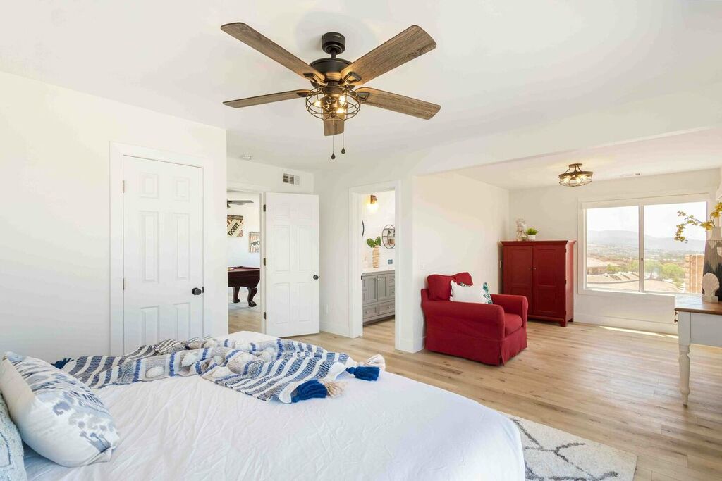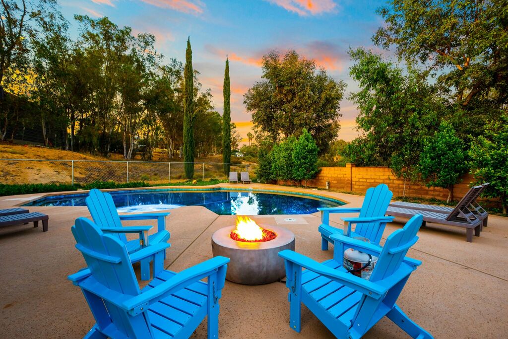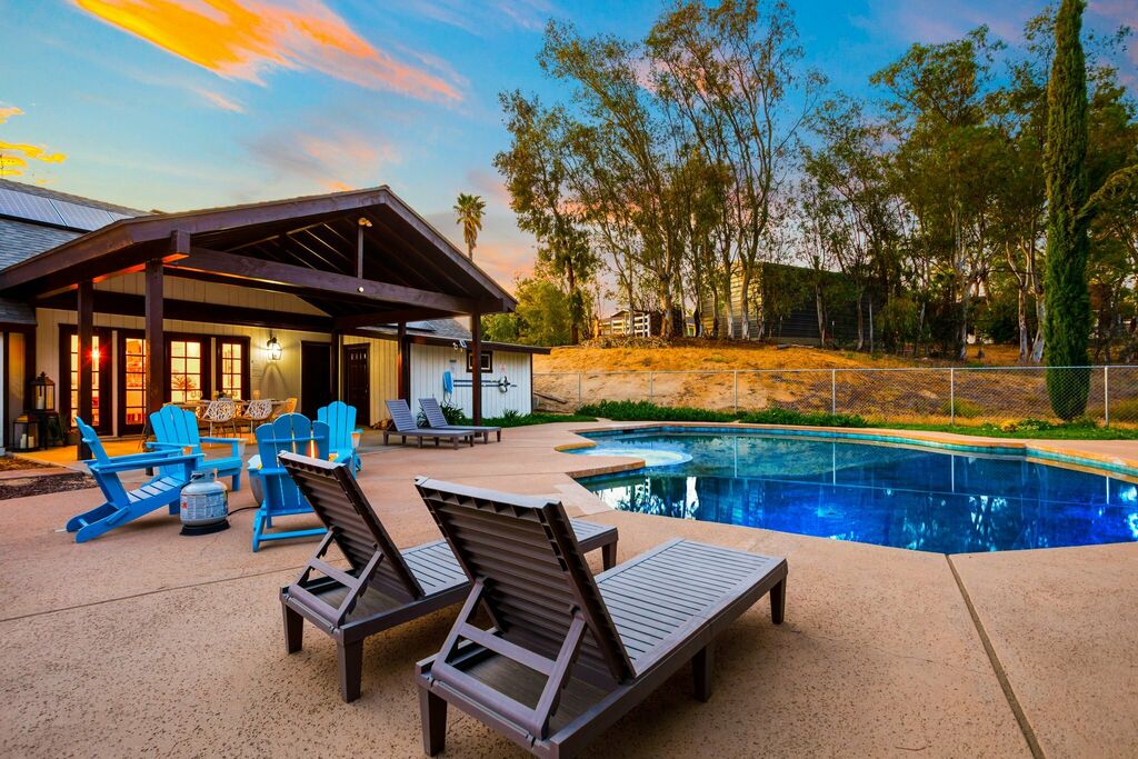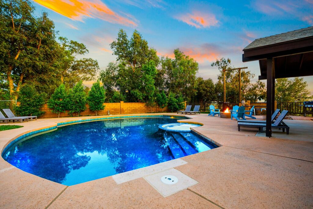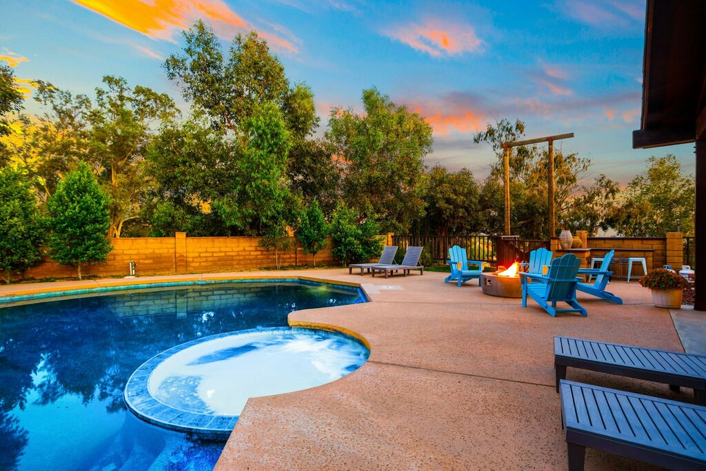The highlight of the home is the outdoor space. Take in the beautiful views while relaxing in the private pool and spa. Spend the day swimming or lounging in the sun, then unwind in the jacuzzi as the evening sets in. The fire pit offers another great spot to gather and enjoy the Temecula sunsets.