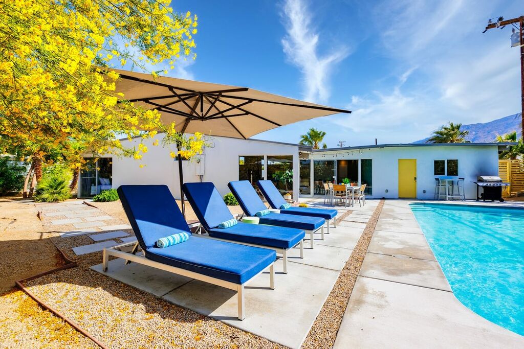 Soak up the rays while enjoying a dip in the pool, and head to the hot tub when the stars come out. A row of poolside loungers adds even more opportunity for sun-soaked bliss. A gas grill and outdoor dining table makes for the ideal setting for alfresco meals. If you're looking to hit the town, shopping and dining options in Downtown Palm Springs are just minutes away. A bounty of excellent golf courses is within easy reach of home, along with some great hiking trails and the Palm Springs Aerial Tram.
