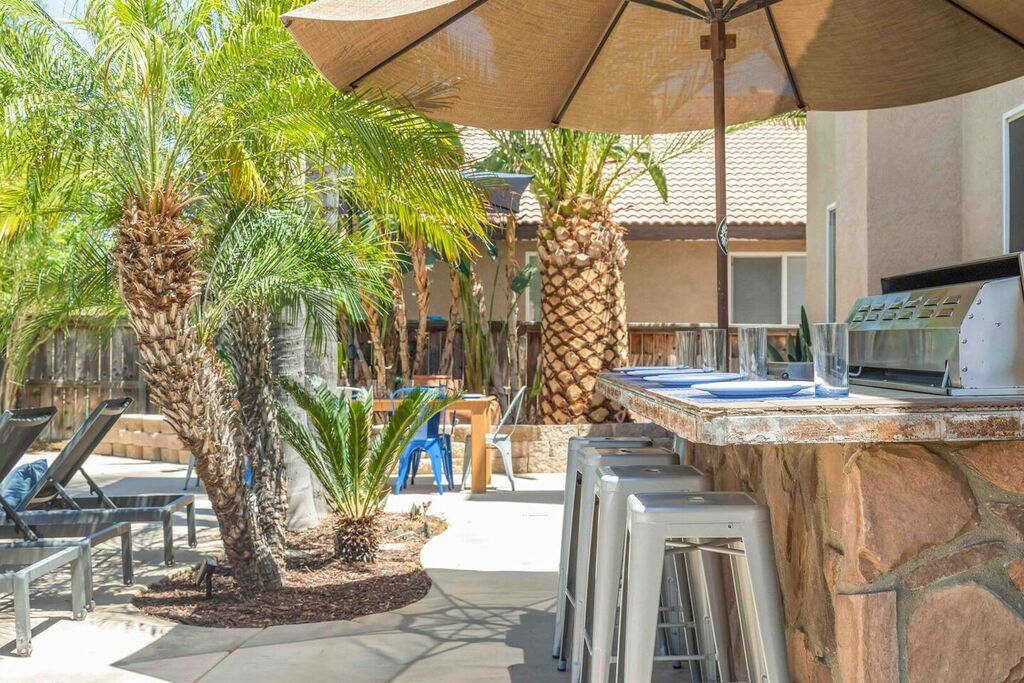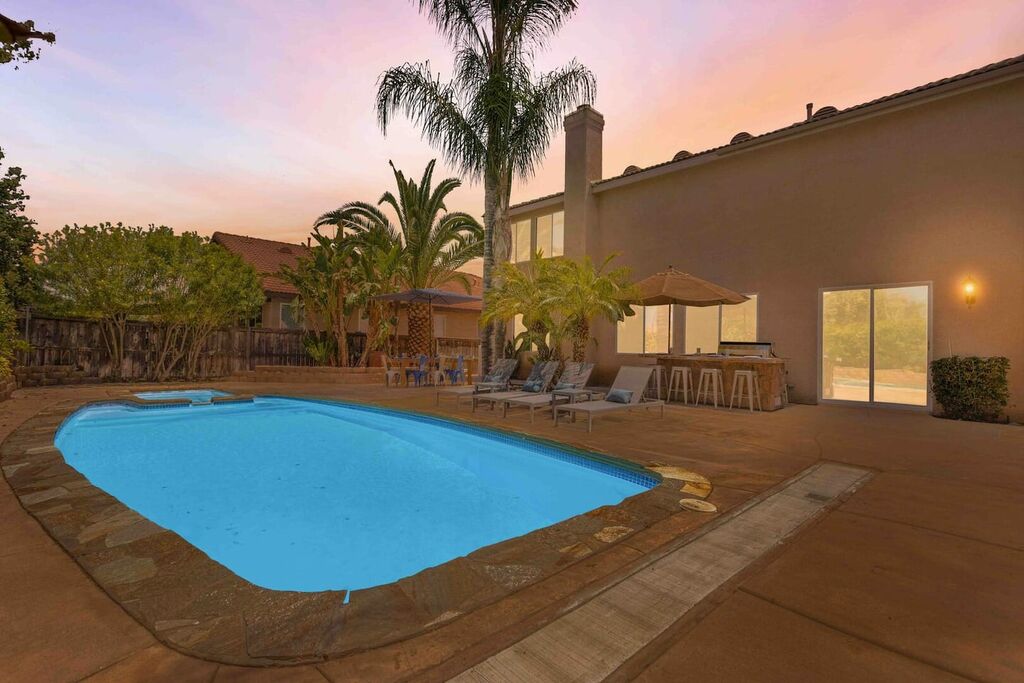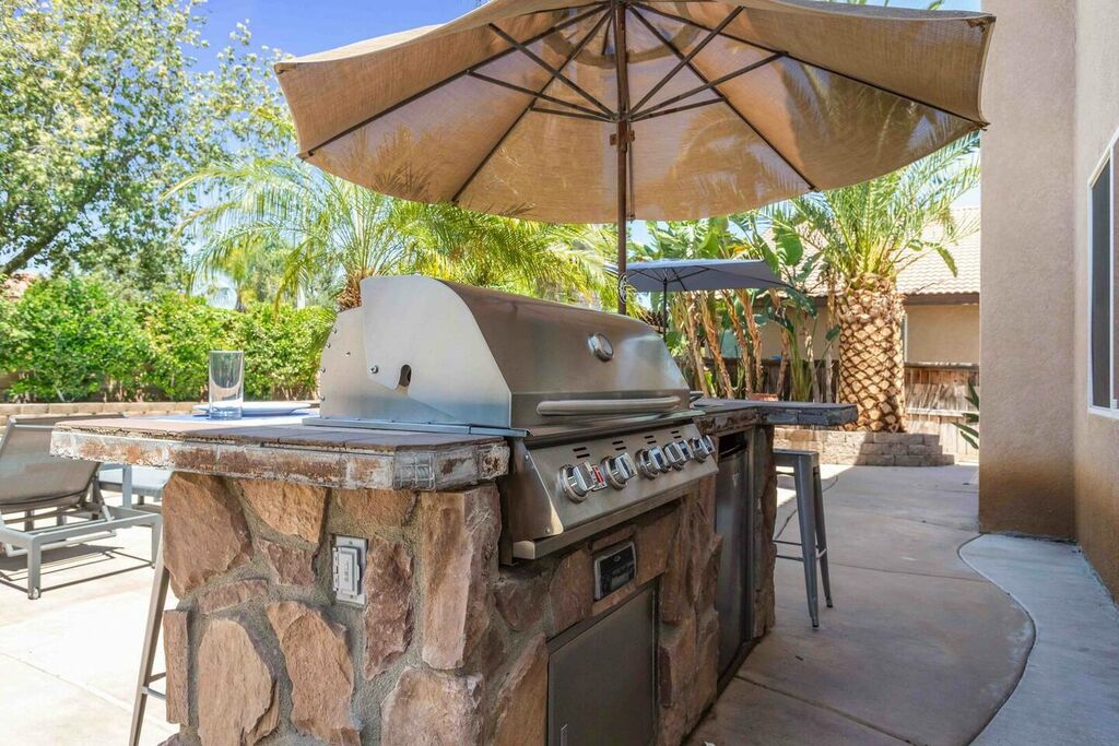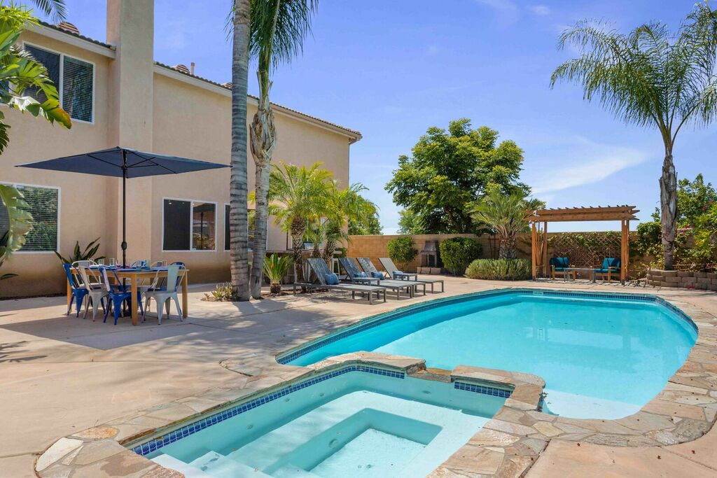 Your 'Wine-cation' will get even better when you step outside to the backyard oasis. Grab a glass of wine and enjoy the pool, jacuzzi, private canopy, umbrella, fire pit areas as well as the perfect lounging areas by the pool. There is a custom built-in BBQ grill where you can cook up something delicious for dinner.