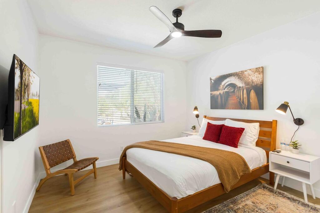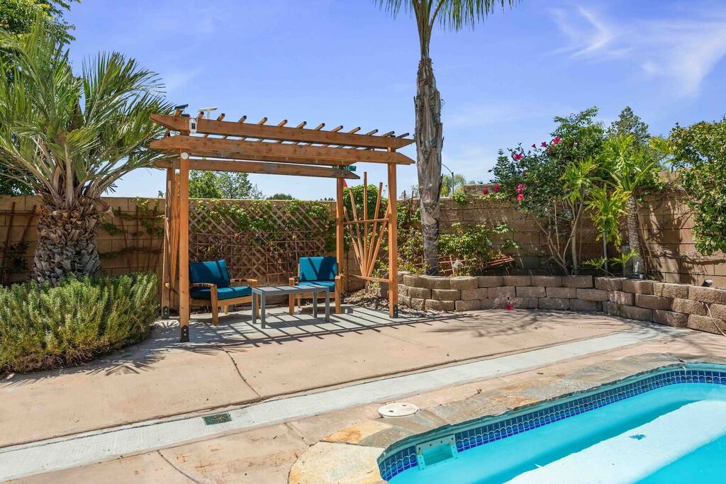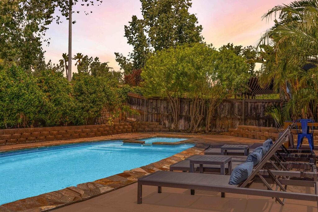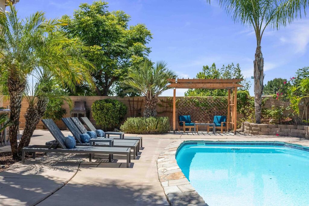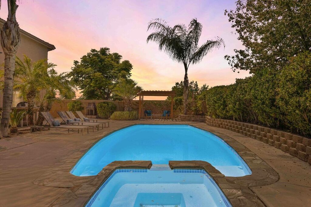 Your 'Wine-cation' will get even better when you step outside to the backyard oasis. Grab a glass of wine and enjoy the pool, jacuzzi, private canopy, umbrella, fire pit areas as well as the perfect lounging areas by the pool. There is a custom built-in BBQ grill where you can cook up something delicious for dinner.