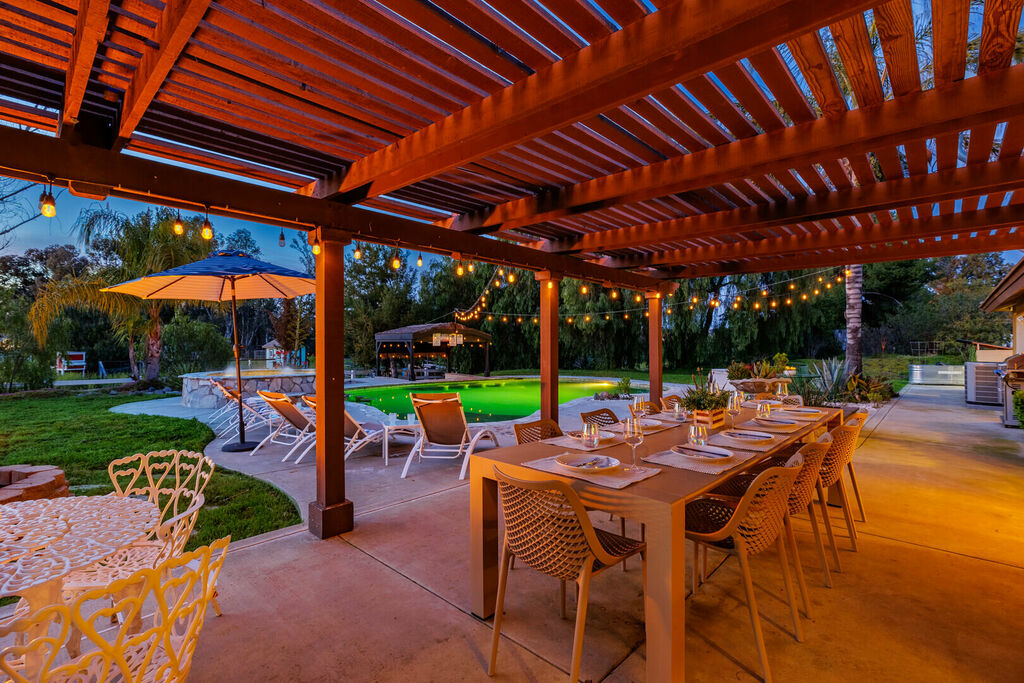 Step outside onto the expansive patio and take in the breathtaking views of the surrounding valley. The large swimming pool and hot tub provide the perfect way to cool off on hot summer days or relax and unwind after a day of wine tasting. The fire pit is the go-to spot to gather with loved ones and roast marshmallows under the stars. A large yard provides plenty of space for outdoor games and activities as well!